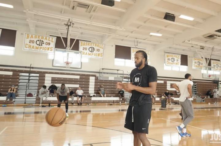 直播吧09月04日讯 追梦、穆迪、德罗赞、小乔丹、杰伦-约翰逊等NBA球员近日参加了著名训练师Chris Johnson的野球局。